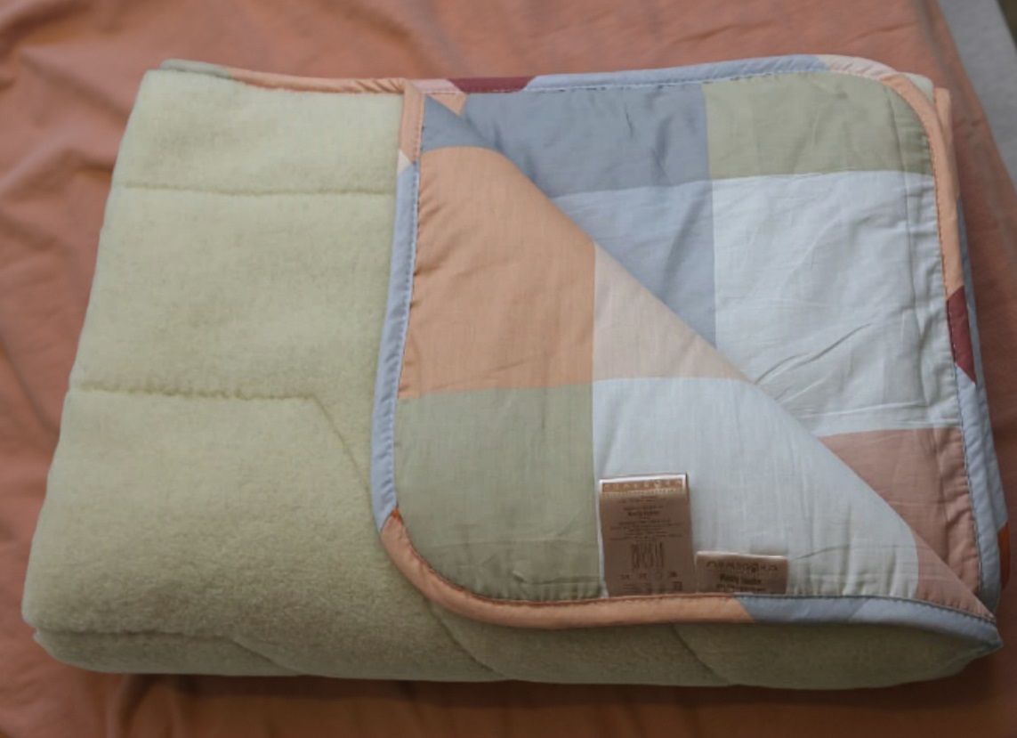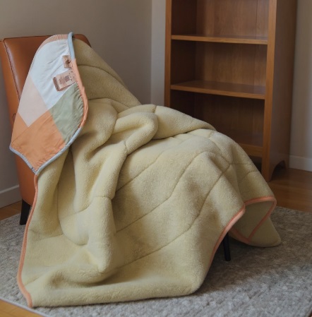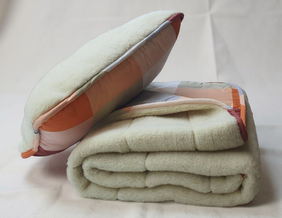 Для изготовления двустороннего мехового одеяла используется нежная, закрученная колечками, мериносовая шерсть. С одной стороны в одеяле - ткань в оранжевую клетку (100% хлопок, сатин). Окантовка в цвет ткани. Другая сторона - открытая шерсть. Чтобы подарить себе здоровый, спокойный сон - достаточно купить тёплое шерстяное одеяло с открытой шерстью. Нежное прикосновение открытой шерсти не раздражает кожу, дарит незабываемые ощущения.