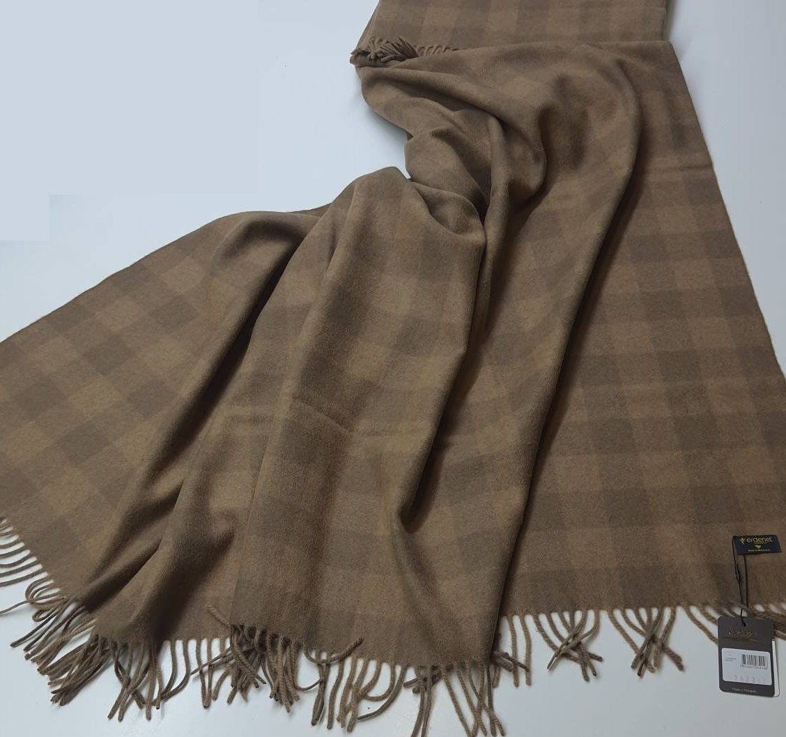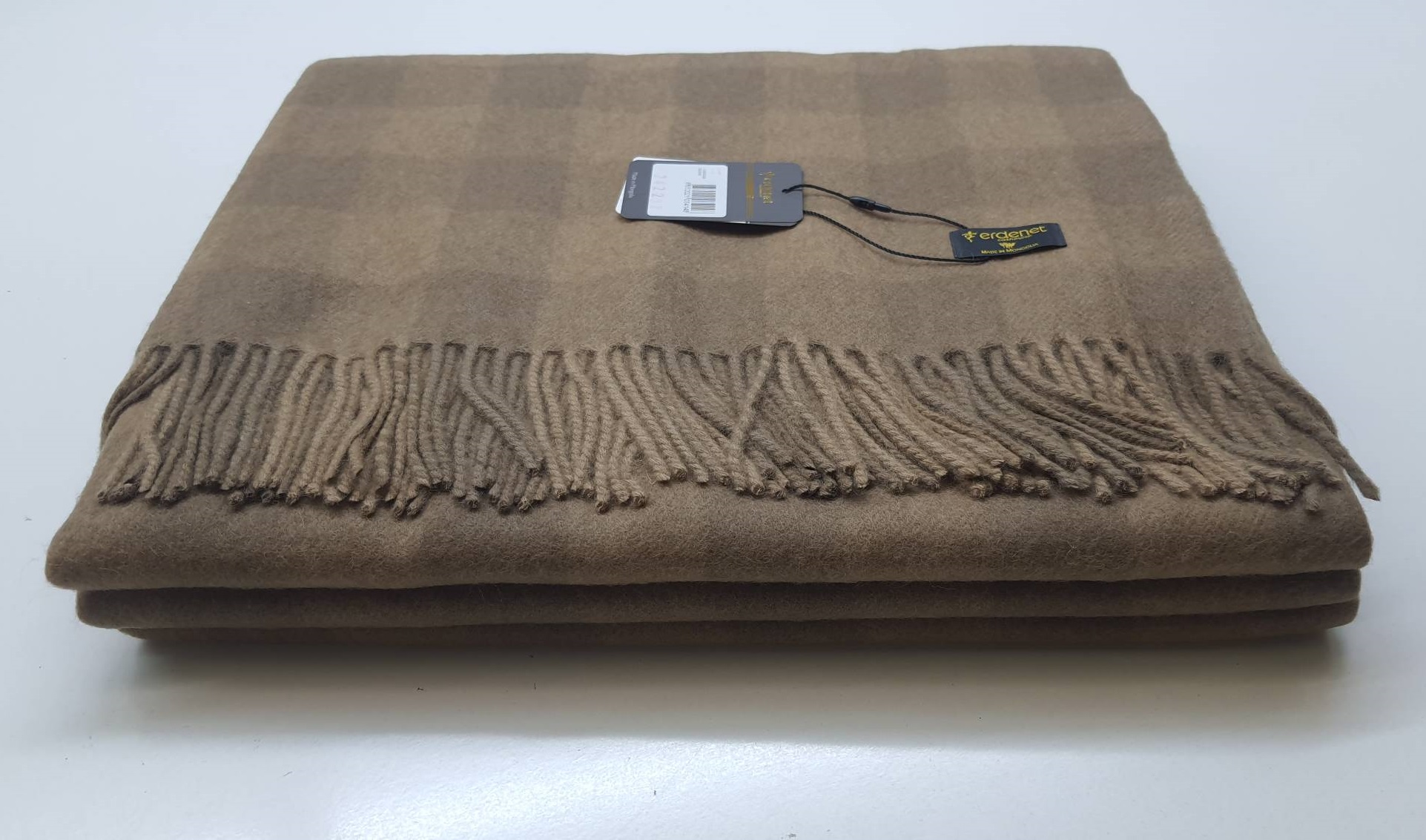 Пледы из верблюжьей шерсти, из шерсти яка, кашемира, тканые одеяла, ковры изготавливаются в Монголии на фабрике Erdenet - она является одной из крупнейшей по переработке шерсти и производству текстильных изделий. Эта продукция завоевала любовь и доверие не только в Монголии, но и во всем мире! Плед натурального цвета кэмэл, не крупная клетка по всему пледу.